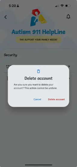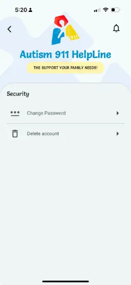 If you choose to delete your account, all associated data will be permanently removed from the Autism 911 HelpLine platform.