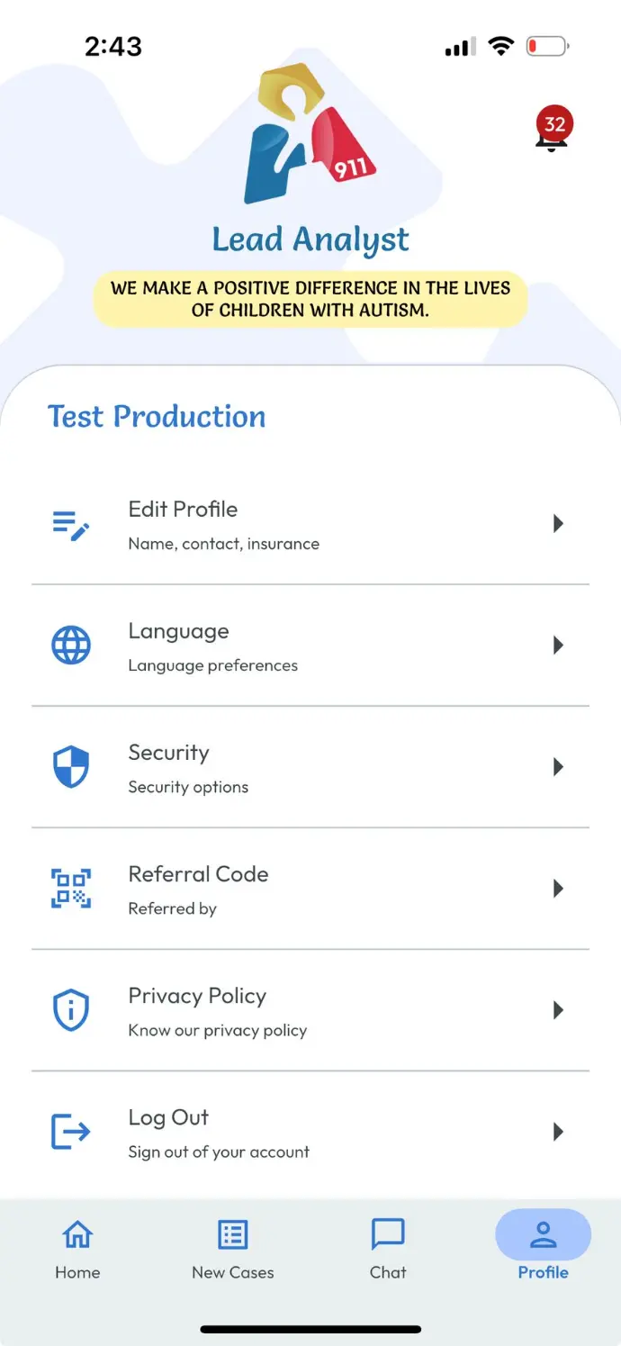 If you choose to delete your account, all associated data will be permanently removed from the Autism 911 LeadAnalyst platform.